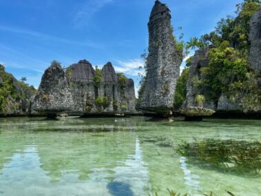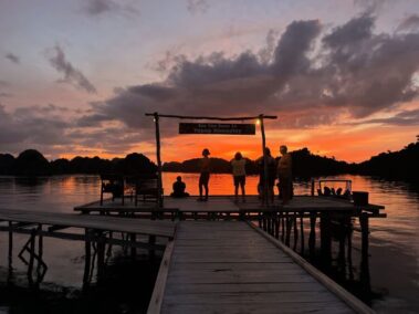 Seikleme läbi Dapunloli imeliste karstilabürintide ning tõuseme piirkonna saarestiku ilu nägemiseks kõrgele Dapunloli kalju tippu. Kajakitame tagasi külalistemajja läbi meritähtede läbipääsu, kus näeme taaskord unikaalseid karstimoodustisi.