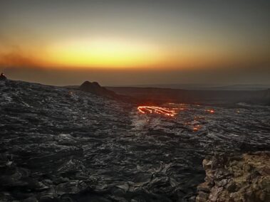 Õhtuks jõuame Erta Ale vulkaanikraatri jalamil asuvale laagripaigale. Erta Ale on üks kaheksast, maailma “laavaärve-tüüpi” vulkaanikraatritest. Enne pimeduse saabumist alustame liikumist vulkaaniktraatri suunas, et päikeseloojangu valguses nähtut jäädvustada. Kui loodusjõud lubavad, saame ära käia ka päris kraatri serval ning hea õnne korral näeme oma silmaga kraatris hõõguvat laavat. Alla tagasi jõudes ootab meid õhtusöök. Magame välivooditel/madratsitel, katuseks ja tekiks tähistaevas.